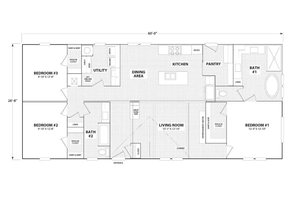 3 Bed 2 Bath | 28 x 60 | 1,560 Sq Ft