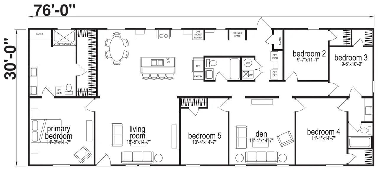 5 Bed 3 Bath | 32’ x 76’ | 2,305 Sq Ft