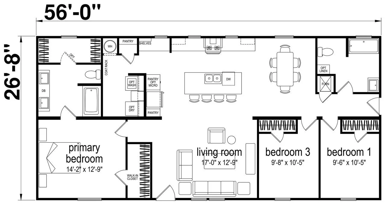 3 Bed 2 Bath | 28’ x 56’ | 1,493 Sq Ft