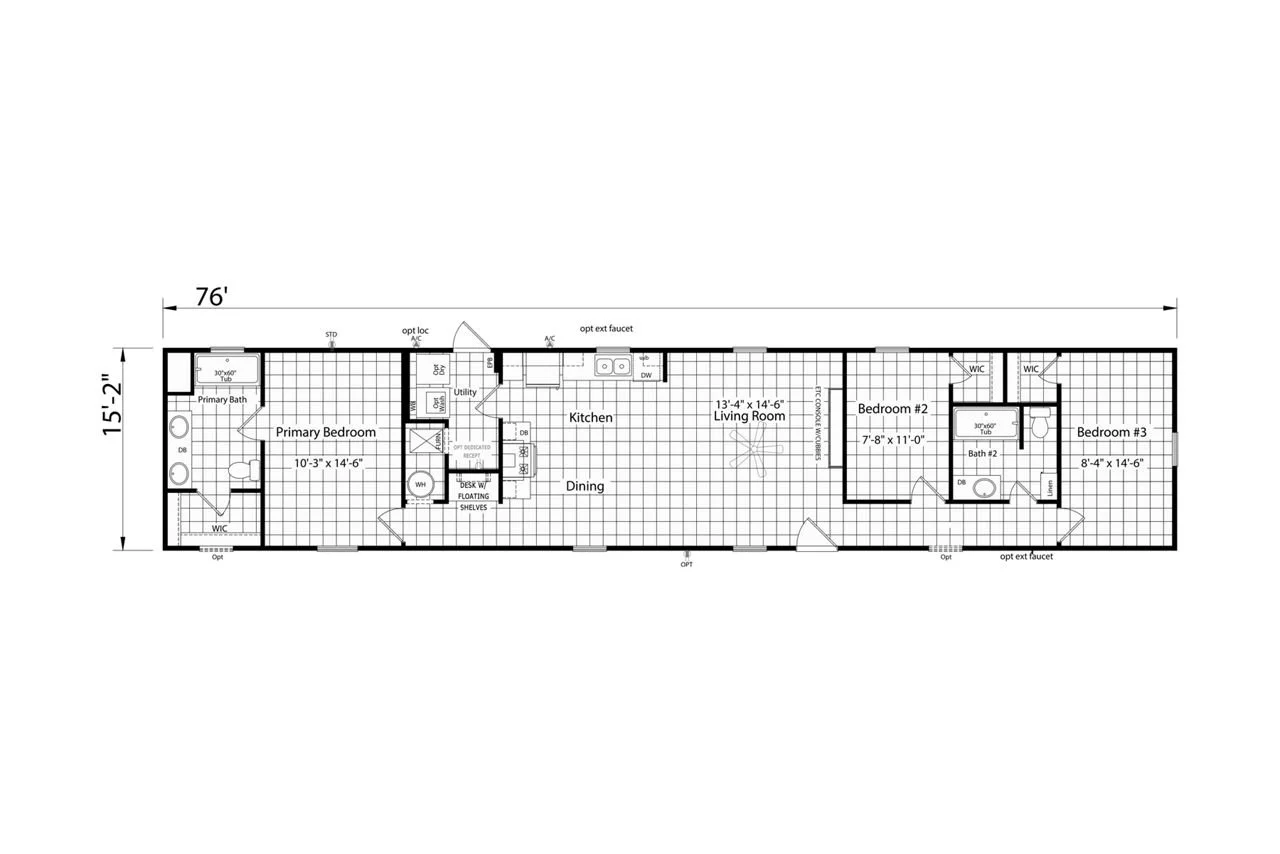 3 Bed 2 Bath | 16 x 76 | 1,153 Sq Ft