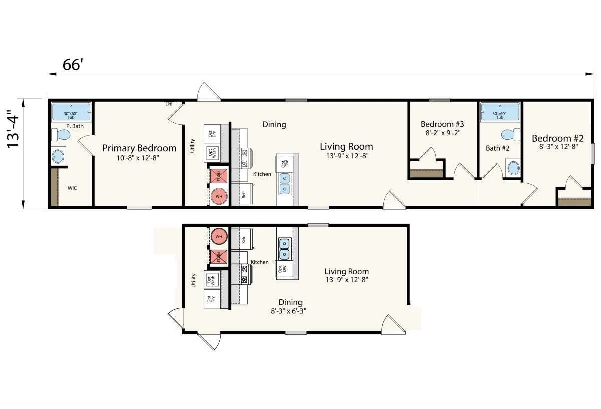 3 Bed 2 Bath | 14’ x 66’ | 880 Sq Ft