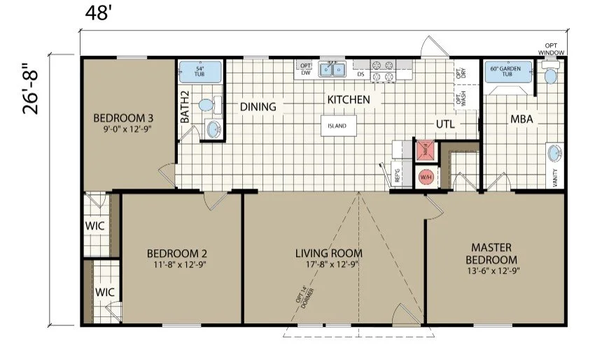 3 Bed 2 Bath | 28 x 48 | 1,280 Sq Ft