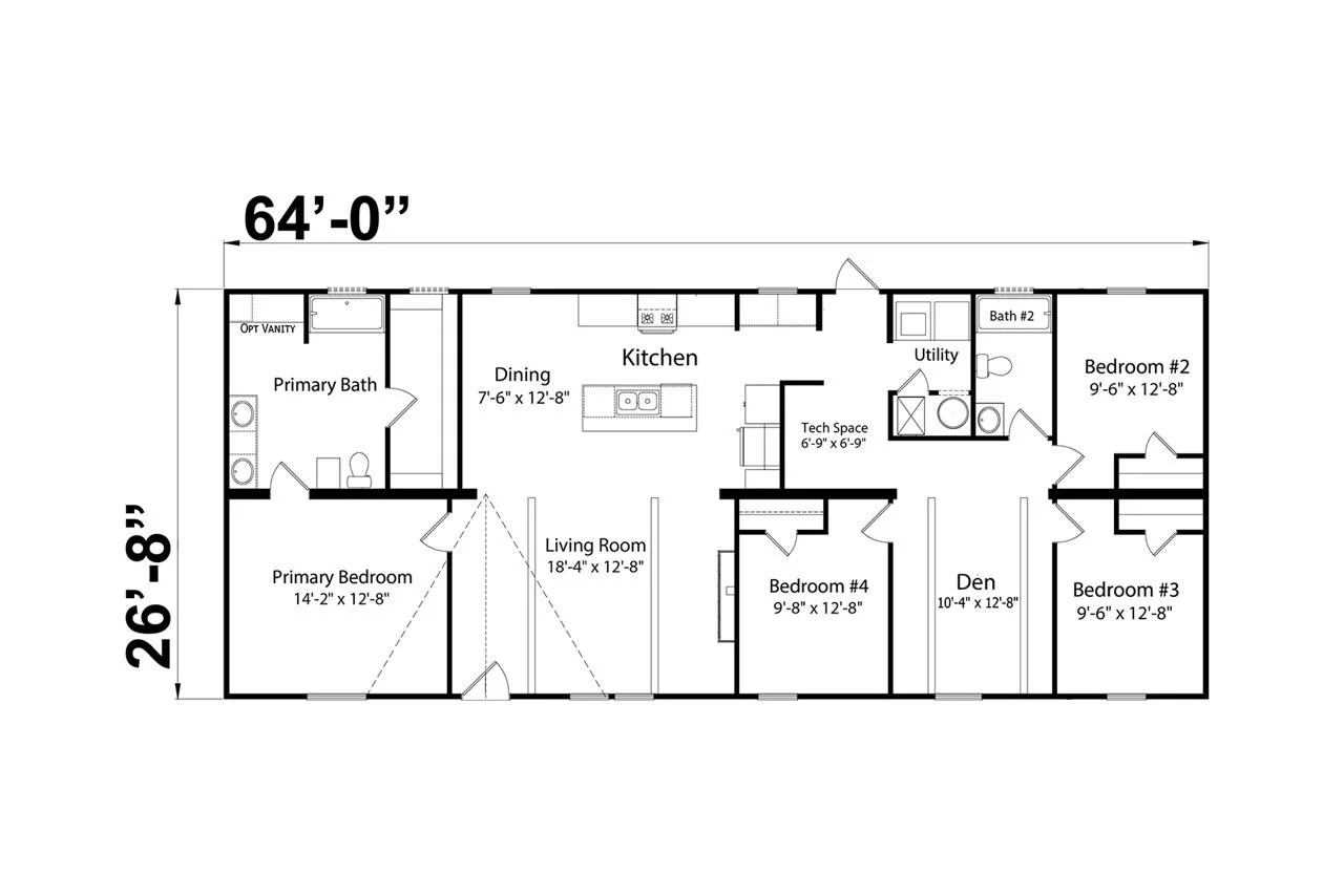 4 Bed 2 Bath | 28’ x 64’ |1,707 Sq Ft