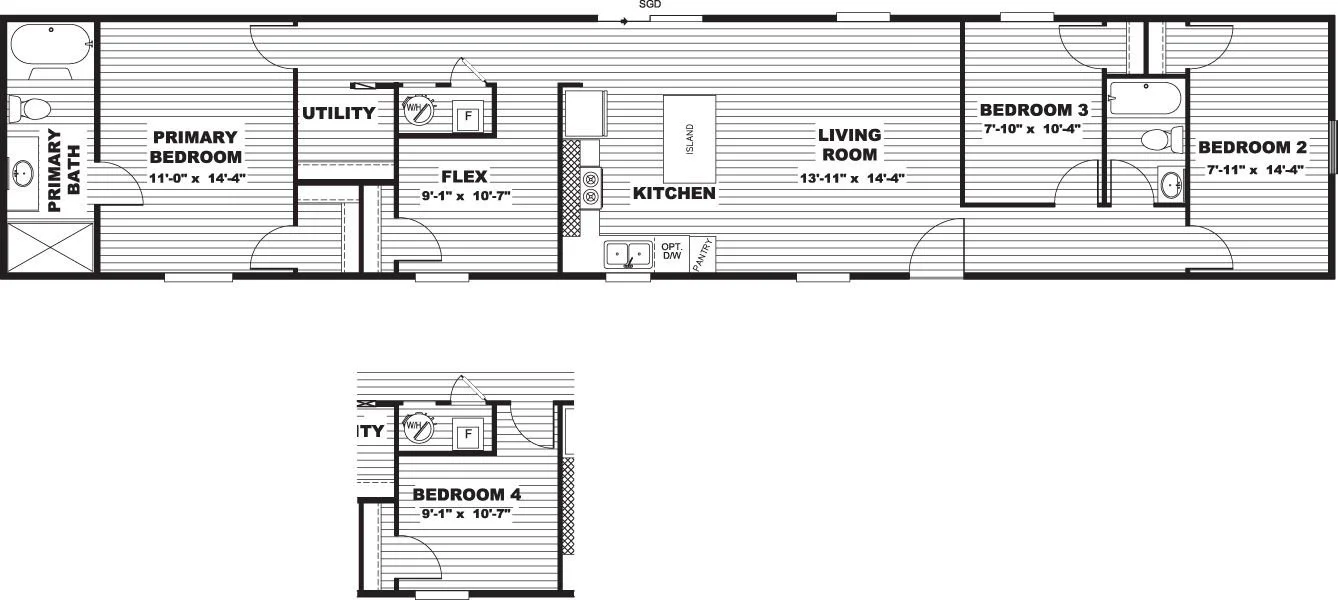 3 Bed 2 Bath | 16 x 76 | 1,140 Sq ft