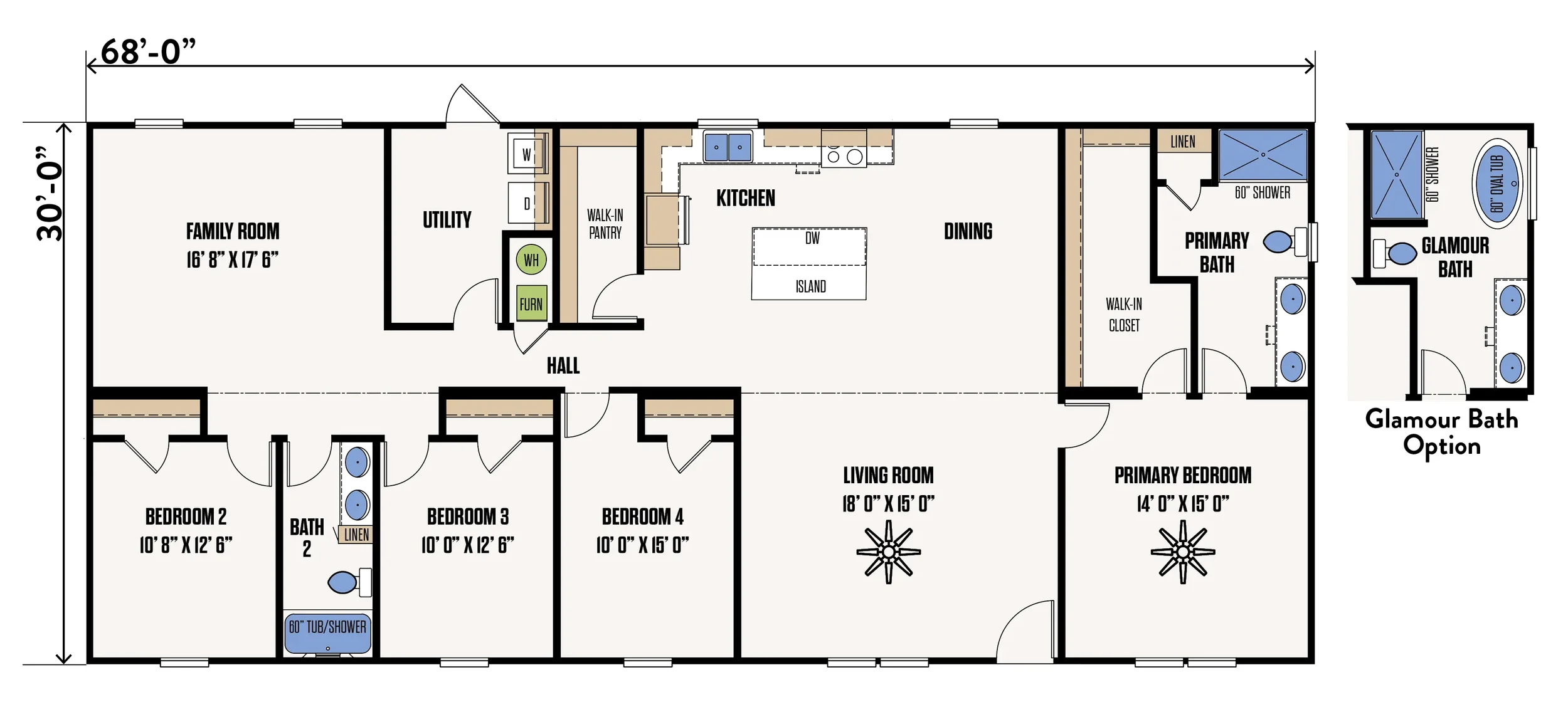 4 Bed 2 Bath | 32’ x 68’ | 2,040 Sq Ft